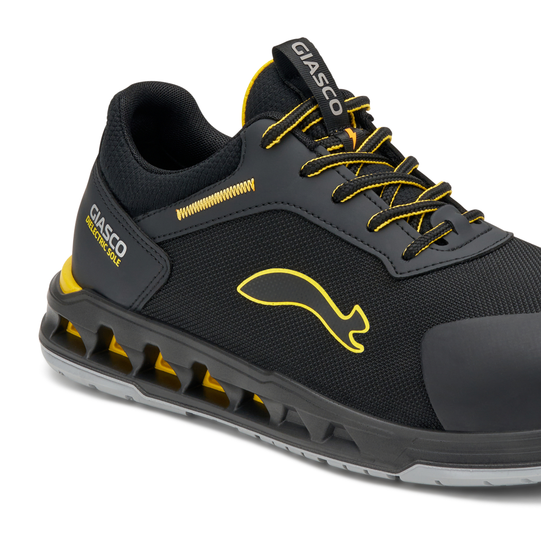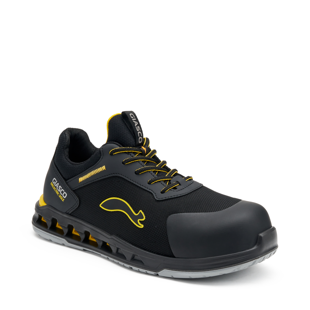 Niedriger WPA-Sicherheitsschuh aus technischem On Dura®-Gewebe, lasergeschnitten mit hochfesten Fasern, atmungsaktiv und abriebfest, kombiniert mit Rubber B-tech-Mikrofaser mit einer Stärke von 1,8-2,0 mm.