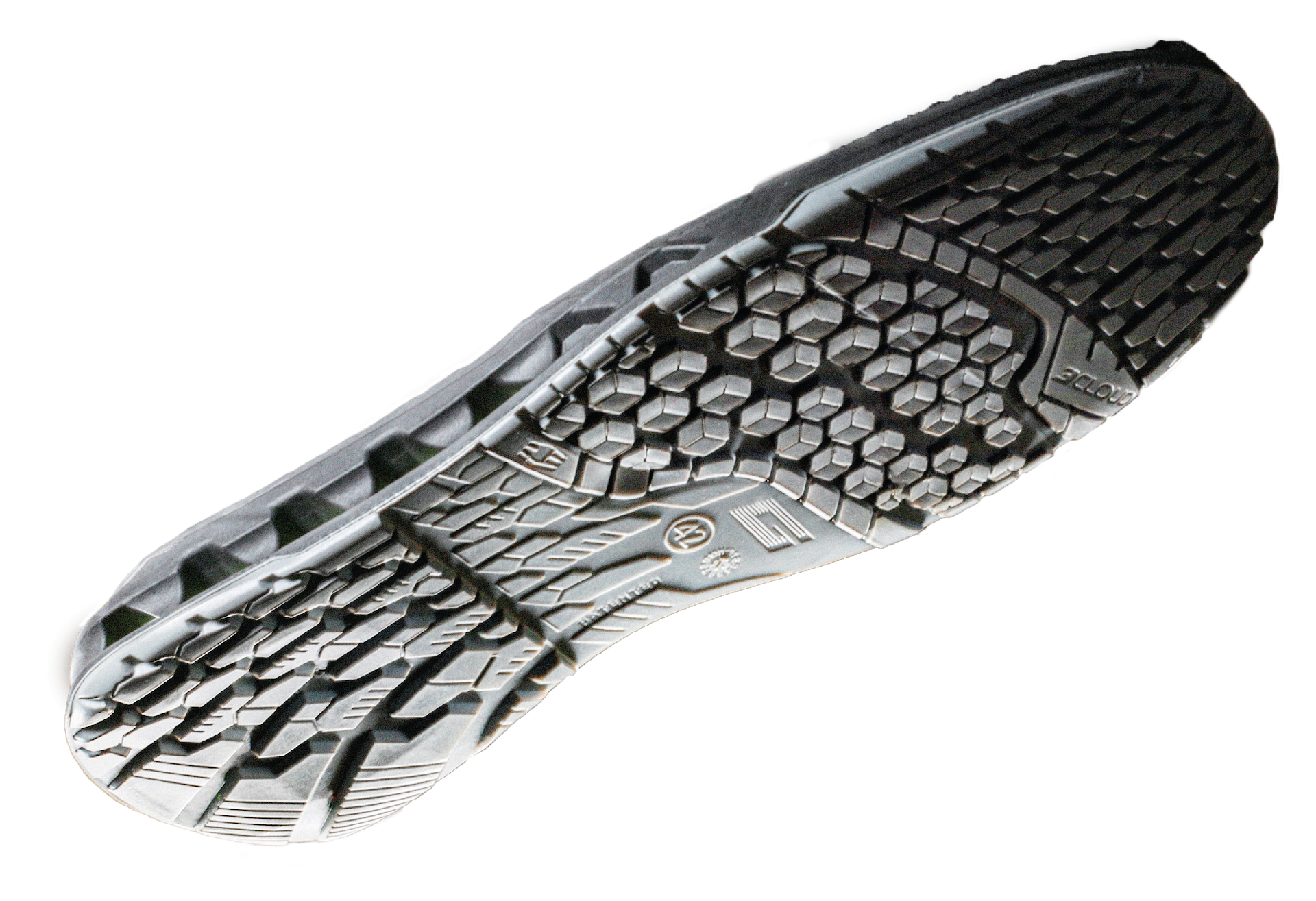 3Cloud and its distinctive through-holes in the sole have been meticulously designed to provide unique comfort for safety footwear in indoor environments. Specifically, the tunnels running perpendicularly through the midsole offer both a pleasant cushioning effect and high rebound. These features are maintained throughout the entire life of the safety shoe thanks to the polyurethane’s strong “memory” property and especially the trapezoidal geometry of the holes. Together, these aspects minimize sole deformation over time. Finally, the outsole of this safety shoe features a dual tread pattern: one inspired by racing tire technology, and the other hexagonal with a "suction cup" effect. Both systems work together to ensure maximum grip on smooth and regular surfaces.