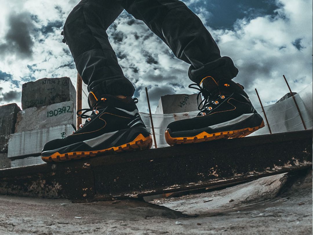 The Anti Torsion system uses a thermoplastic shank designed to increase stability on irregular and wet surfaces. Unlike standard shanks, it flexes with the foot’s natural motion, reducing the risk of twists and falls. Ideal for outdoor work, especially in construction, where surface control is critical.