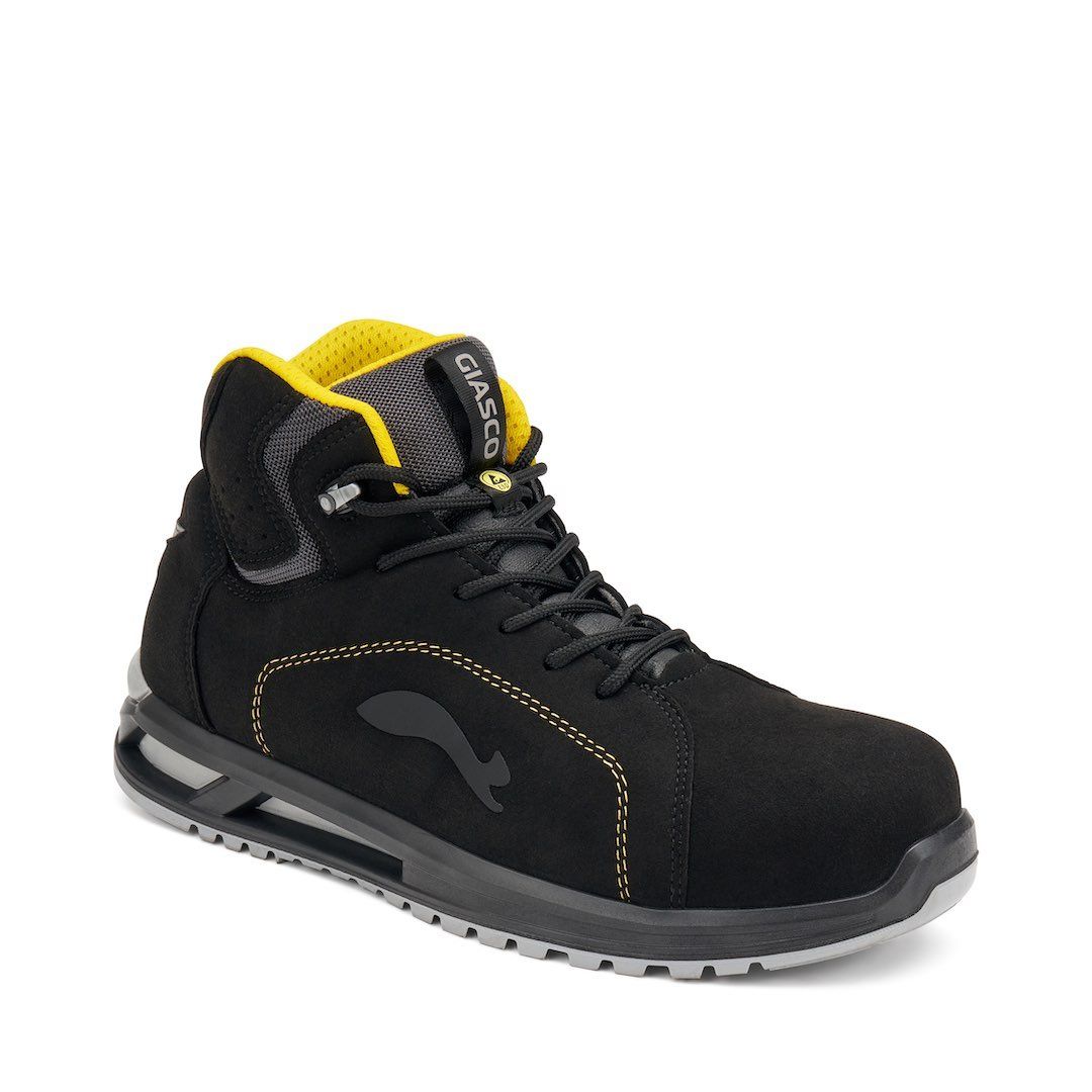 Footwear with energy absorption in the heel to reduce impact while walking. Enhances comfort and protects joints in demanding work environments.