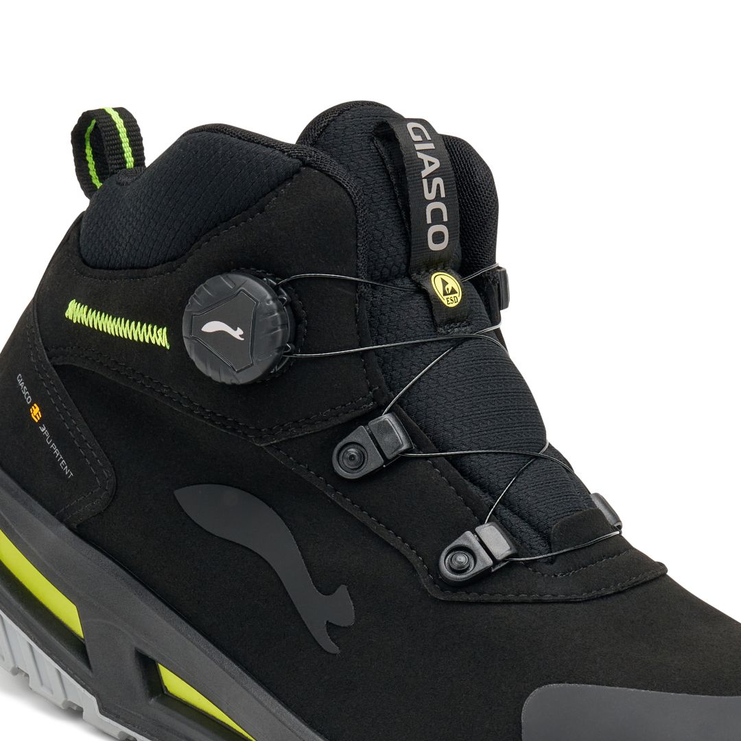 The Click Open system allows for rapid shoe donning and removal via a rotating knob. A stainless steel wire around the instep ensures a uniform, stable fit, enhancing comfort and safety. Since there are no laces to come undone, it minimizes trip risks and internal friction—ideal for glove-wearing operators or those who change shoes frequently.