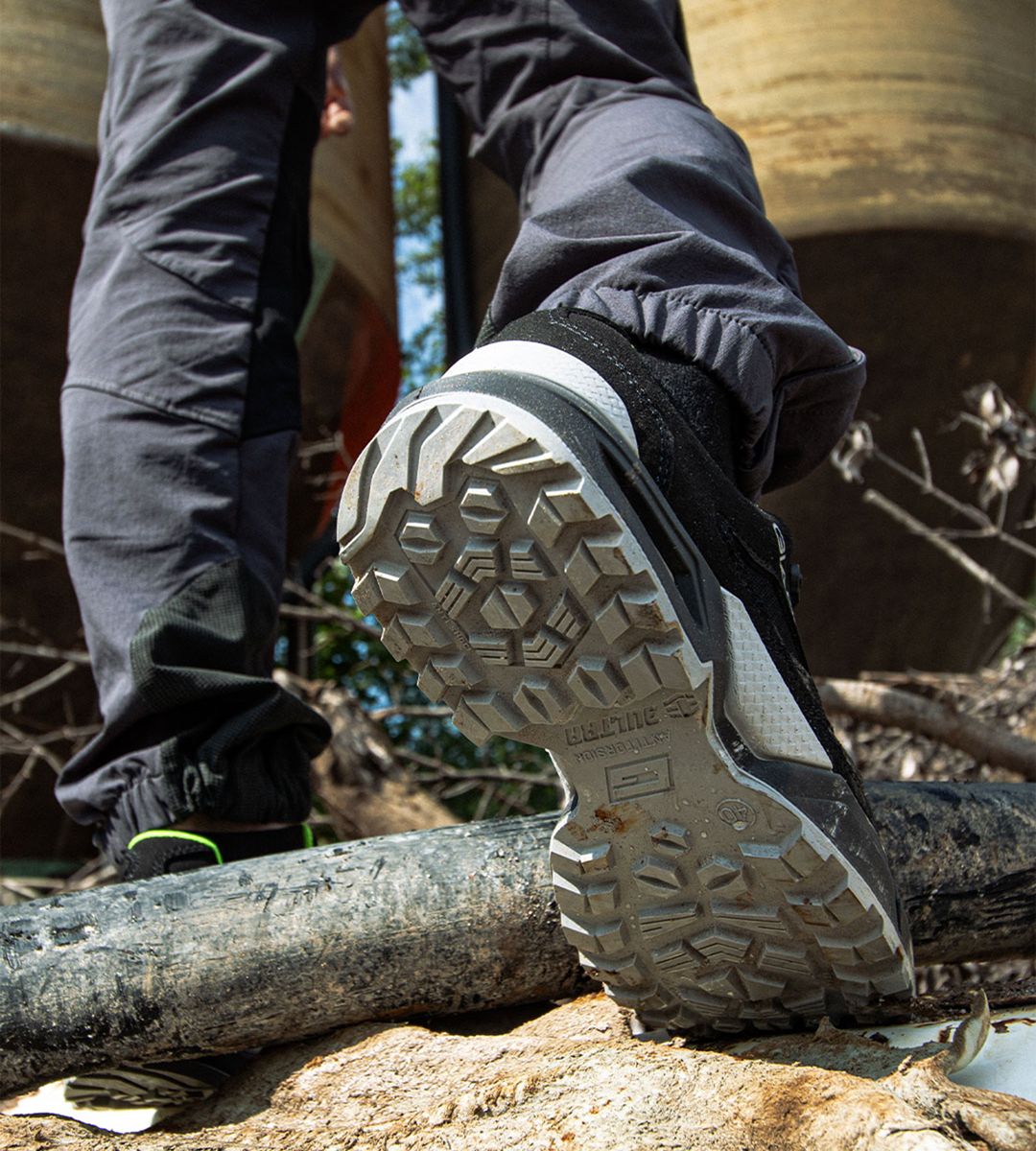The Anti Torsion system uses a thermoplastic shank designed to increase stability on irregular and wet surfaces. Unlike standard shanks, it flexes with the foot’s natural motion, reducing the risk of twists and falls. Ideal for outdoor work, especially in construction, where surface control is critical.