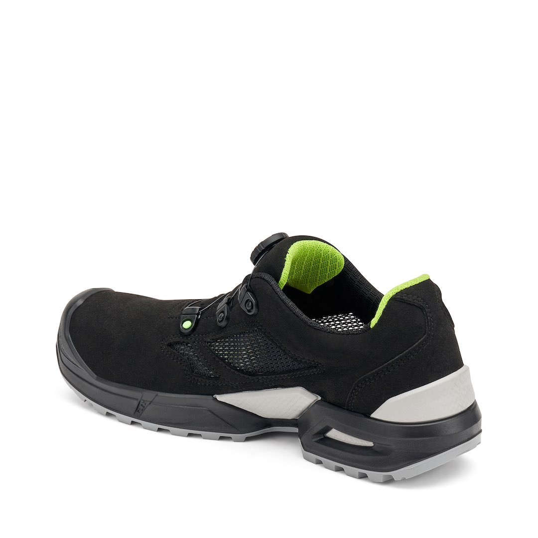 The Click Open system allows for rapid shoe donning and removal via a rotating knob. A stainless steel wire around the instep ensures a uniform, stable fit, enhancing comfort and safety. Since there are no laces to come undone, it minimizes trip risks and internal friction—ideal for glove-wearing operators or those who change shoes frequently.