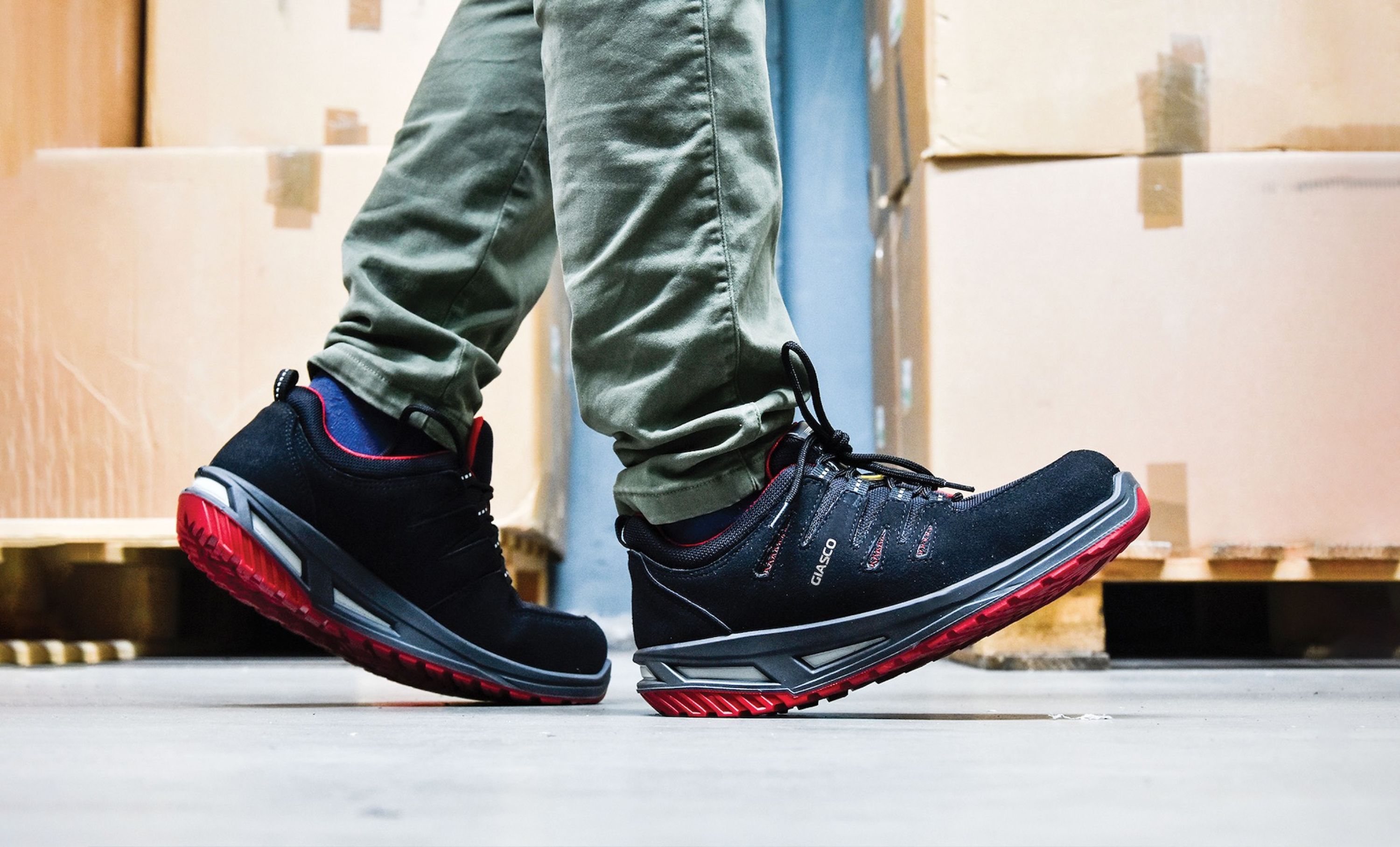Giasco warehouse safety shoes and protective footwear for light industry meet the highest safety standards without compromising on lightness and functional design. From comfortable shoes for warehouse work to solutions for logistics operators, each model is designed to reduce muscle fatigue and increase productivity. Composite toe caps, slip-resistant soles, and a flexible structure make these shoes ideal for those working in dynamic environments, where safety must go hand in hand with mobility.
