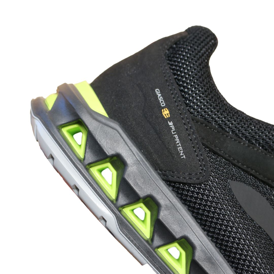 La technologie “Three to Be” à triple densité injectée représente l’un des résultats les plus avancés de notre département R&D. Brevetée par Giasco, elle intègre trois couches de semelles injectées entièrement en polyuréthane pour optimiser les performances en matière de confort, stabilité et adhérence.