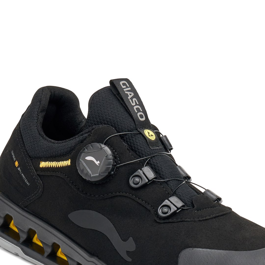 Il sistema Click Open permette di indossare e rimuovere rapidamente la scarpa grazie a una manopola rotante che sostituisce i lacci tradizionali. Il filo in acciaio inox che percorre il collo del piede assicura una calzata uniforme e stabile, migliorando sia il comfort che la sicurezza. L’impossibilità che la calzatura si slacci elimina il rischio di inciampo e riduce lo sfregamento interno, rendendolo ideale per chi lavora con i guanti o deve cambiare calzature più volte al giorno.