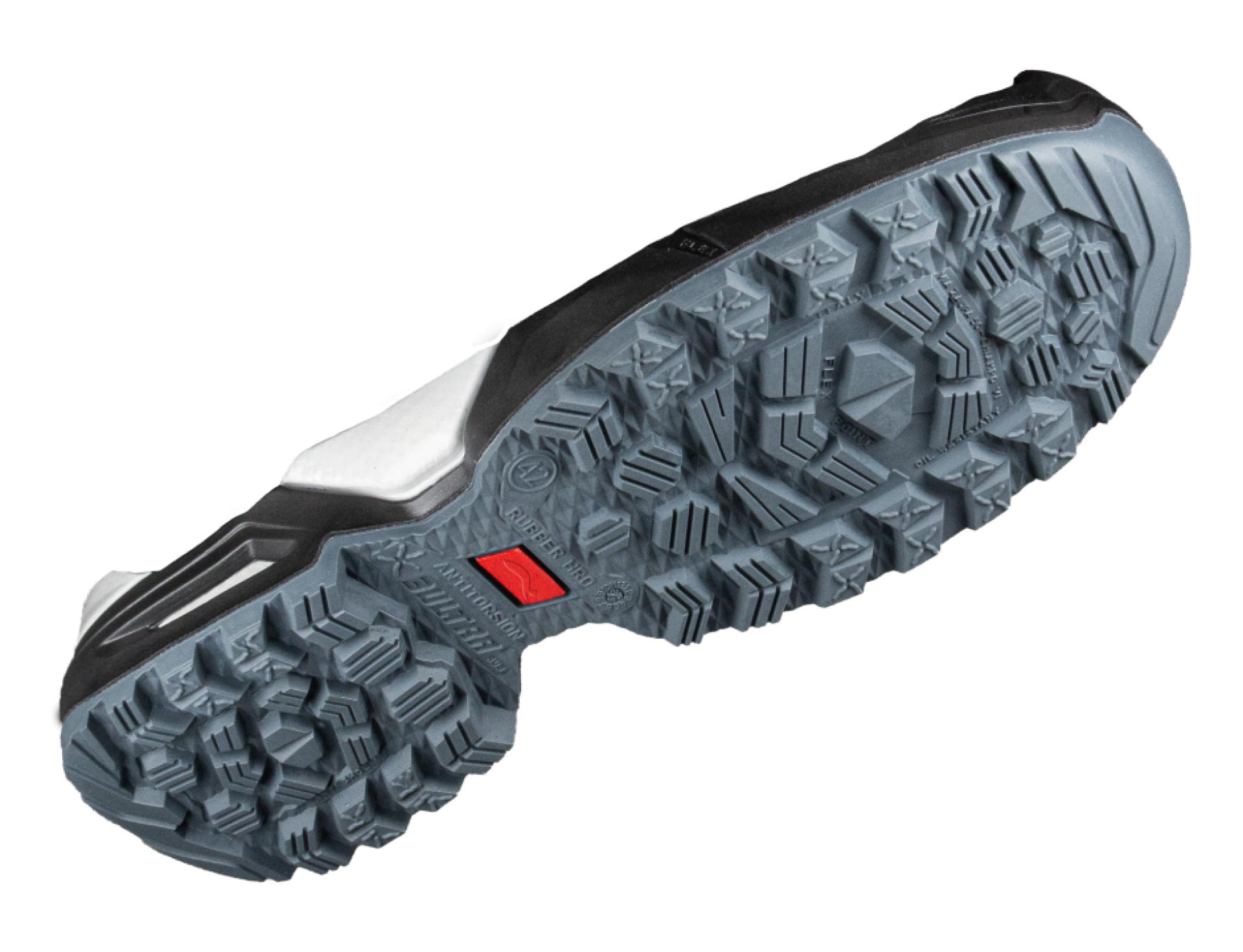 Infine, la suola è equipaggiata con la tecnologia "ICE GRIP": una serie di lamelle posizionate sui tappi della suola che aumentano l’aderenza e aiutano a frenare la calzatura antinfortunistica su superfici ghiacciate o innevate.