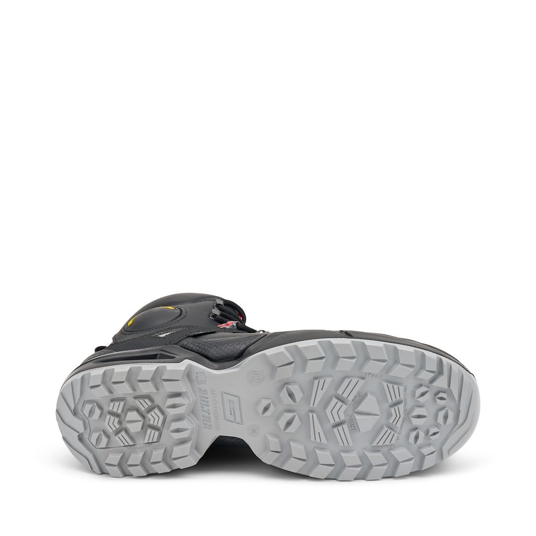 Il sistema Anti Torsion utilizza un cambrione termoplastico progettato per aumentare la stabilità della calzatura su superfici irregolari e bagnate. A differenza dei cambrioni standard, questa tecnologia non irrigidisce la scarpa, ma segue il movimento naturale del piede riducendo il rischio di torsioni e cadute. Una soluzione ideale per chi lavora in esterni e in particolare nei settori edili, dove il controllo dell’appoggio è fondamentale.