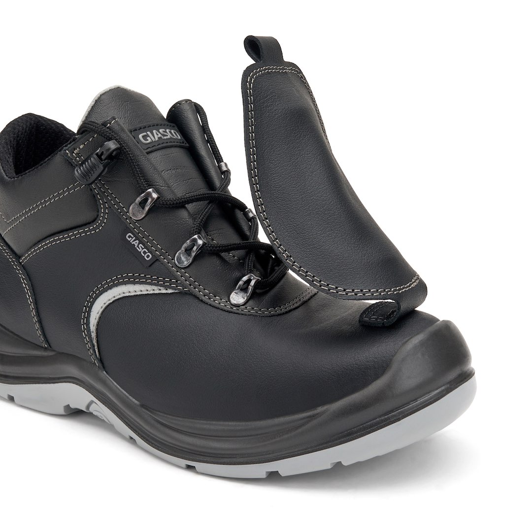 Puntale in COMPOSITO resistente a urti fino a 200 Joule, leggero e privo di metallo, ideale per proteggere le dita in sicurezza senza appesantire la calzatura.