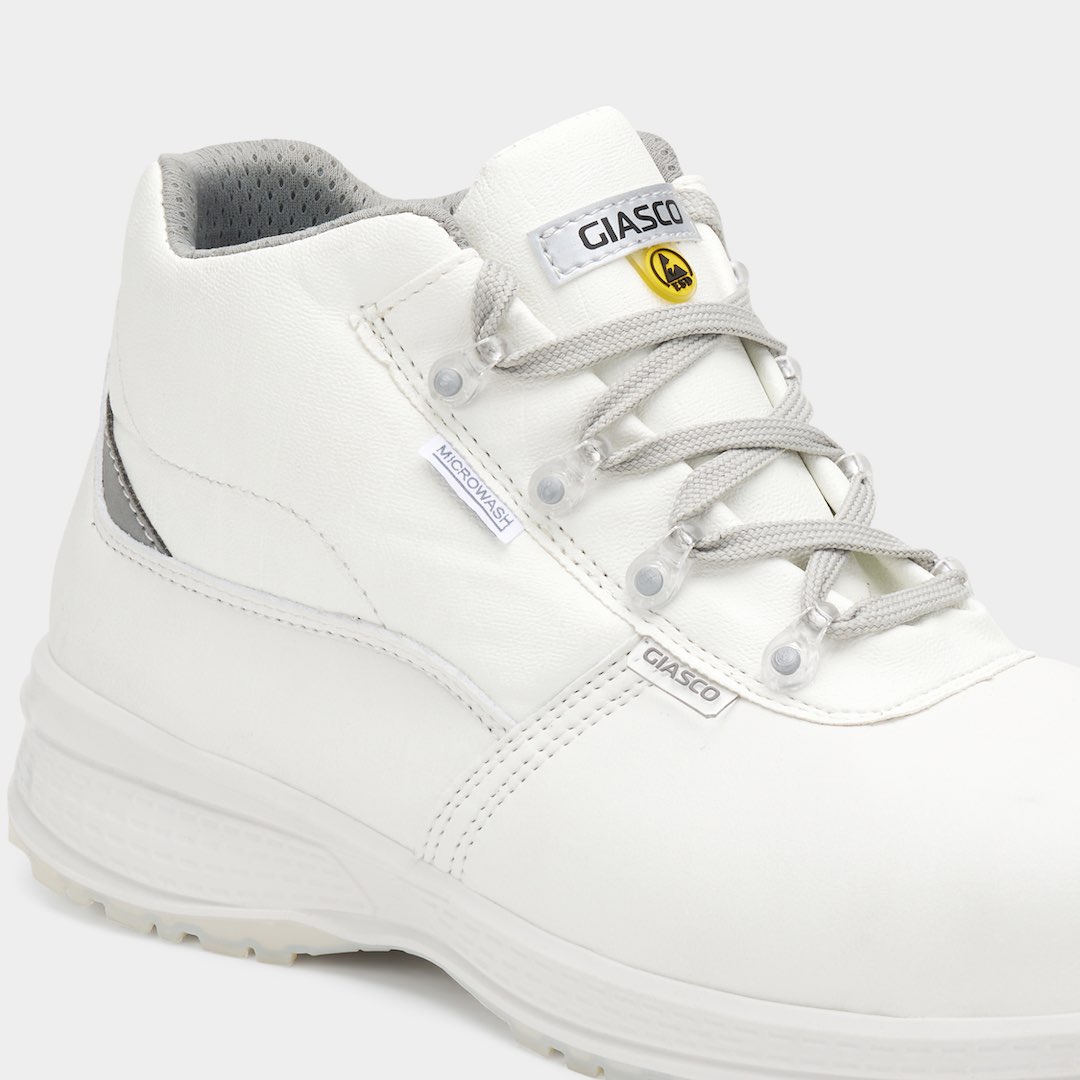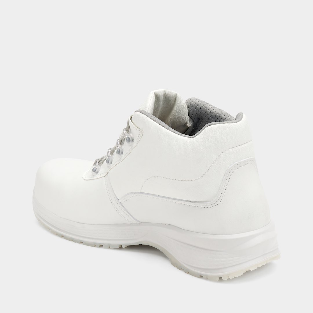 Microwash è un materiale in microfibra altamente traspirante progettato per garantire comfort e igiene in settori come l’industria alimentare e ospedaliera e per facilitare la necessaria pulizia. La sua rifinizione in poliuretani traspiranti conferisce un aspetto simile alla pelle pieno fiore, combinando leggerezza e resistenza. Rispetto alla pelle naturale, la microfibra è il 40% più leggera, riducendo l’affaticamento anche durante turni lunghi.