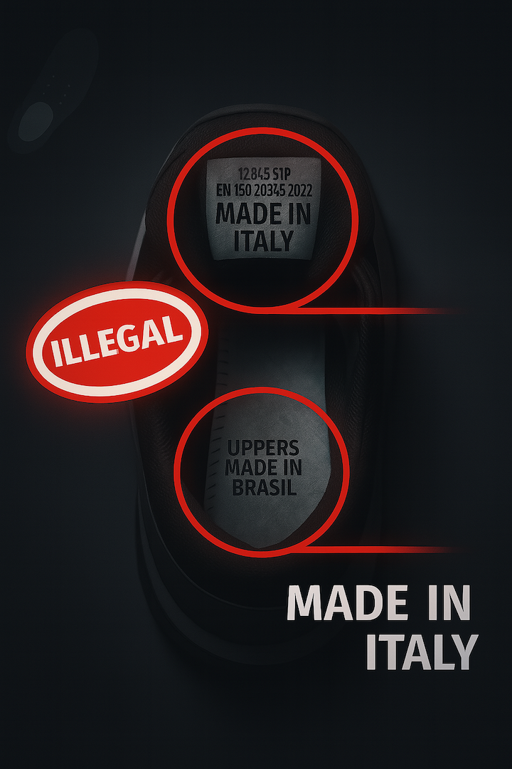 Molti prodotti riportano diciture Made In Italy o Made In Germany senza rispettare le normative europee, nascondendo origini reali come Cina, India, o Vietnam. Giasco adotta un approccio trasparente, rispettando le normative e dichiarando correttamente l'origine dei propri prodotti. Invitiamo distributori e rivenditori a verificare sempre l'esatta provenienza delle calzature per evitare responsabilità penali.